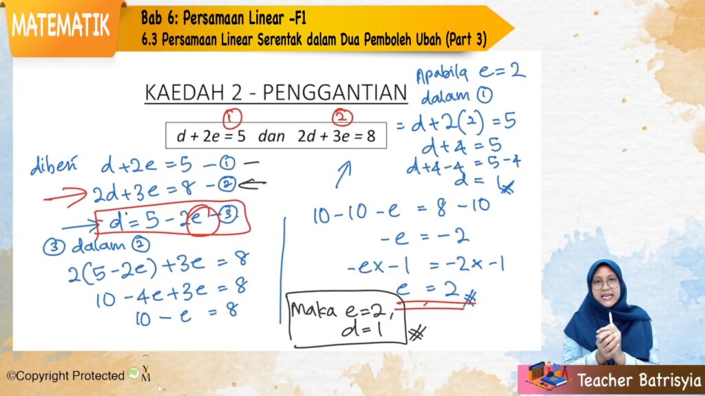 F1_MAT_06_05 Persamaan Linear Serentak dalam Dua Pemboleh Ubah (Part 3) This content is for members with subscription.Log In Register