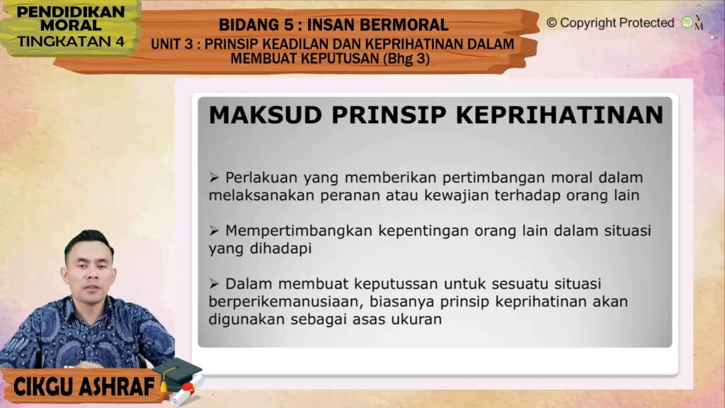 F4_MORAL_03_03 Prinsip Keadilan dan Keprihatinan dalam Membuat Keputusan (Bhg 3) This content is for members with subscription.Log In Register