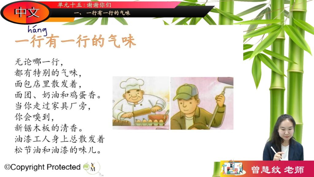 S2_BC_15_01 单元十五 : 谢谢你们 – 一、一行有一行的气味
