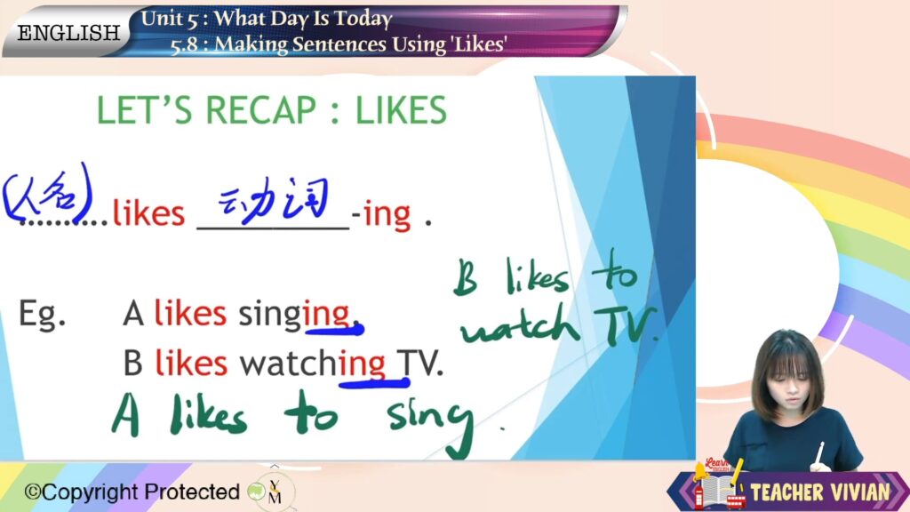 S2_ENG_05_08 What Day Is Today: Making Sentences Using ‘Likes’