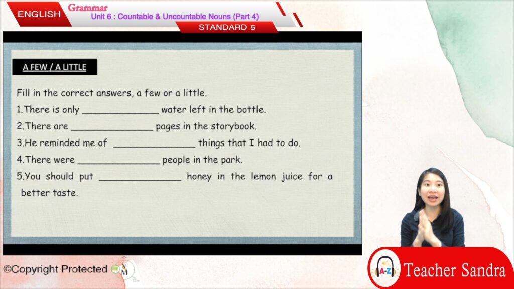 S5_ENG_06_04 Countable & Uncountable Nouns (Part 4) This content is for members with subscription.Log In Register