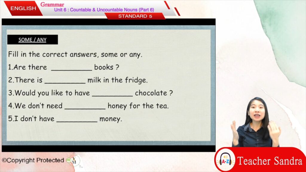 S5_ENG_06_06 Countable & Uncountable Nouns (Part 6) This content is for members with subscription.Log In Register